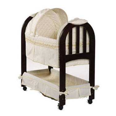 It seems like every day our incredible next door neighbors are knocking on our door with more of the cutest baby things imaginable. I cannot believe how lucky we are to have such great friends. They have saved us thousands of dollars in baby necessities. Yesterday they brought us over an inflatable rubber-duckie swimming pool and an activity mat for baby, and the day before, they brought over this GORGEOUS Bertini bassinet. If I could only figure out where to find this Valencia pattern, the whole nursery would be decorated like this. I love it. Not to mention the bassinet rocks and plays five different songs to help soothe the baby to sleep. I think this will be one of his favorite places.