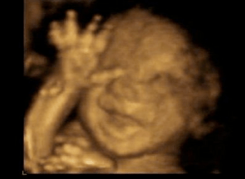 The heartbeat is rapid and strong, and both Baby and Mom are in excellent health.