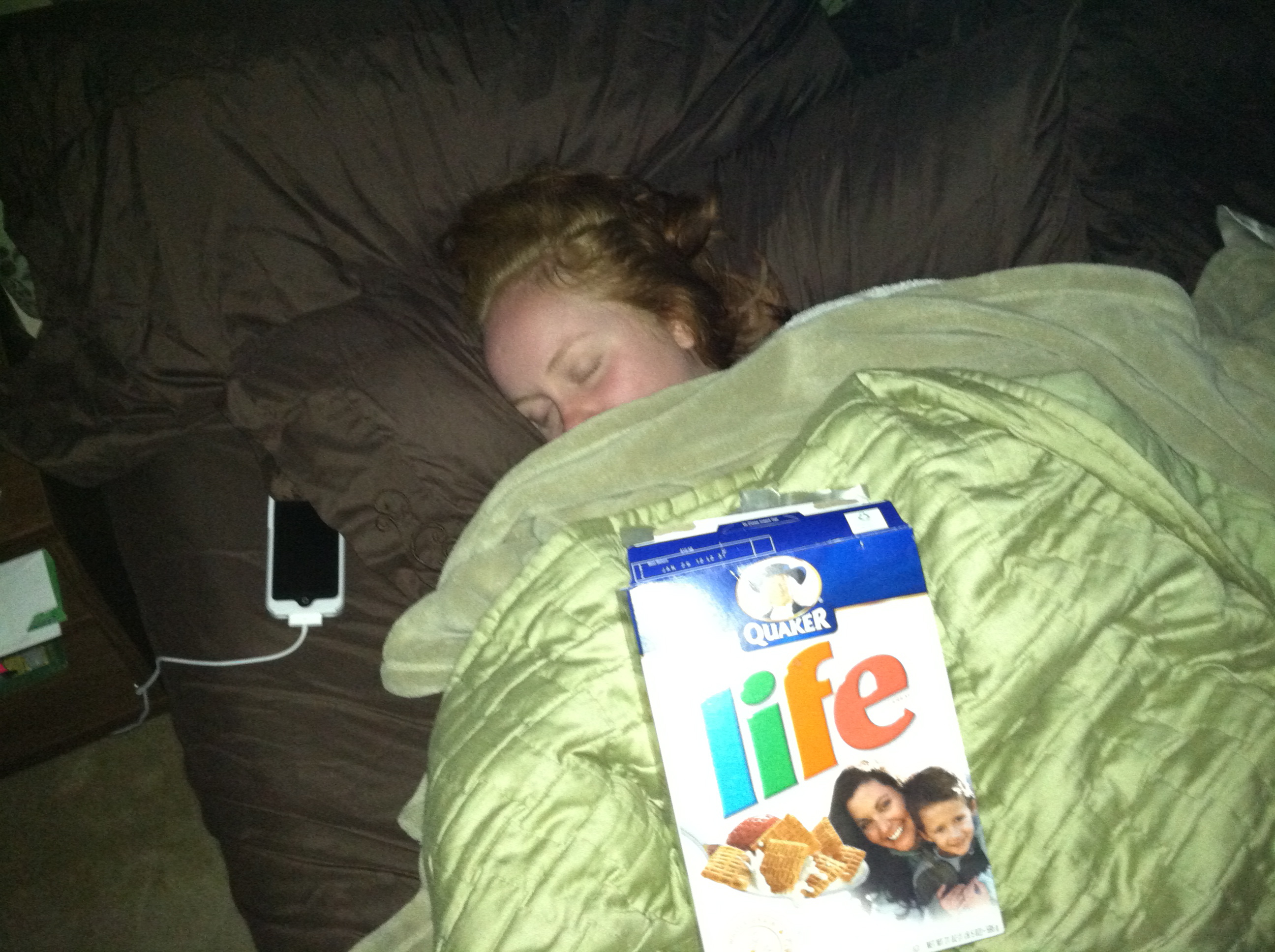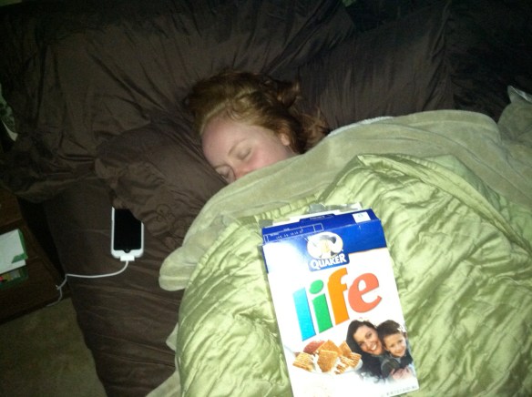 Morning sickness starts… the only thing that sounds good at all is Life Cereal. I took that box with me everywhere.