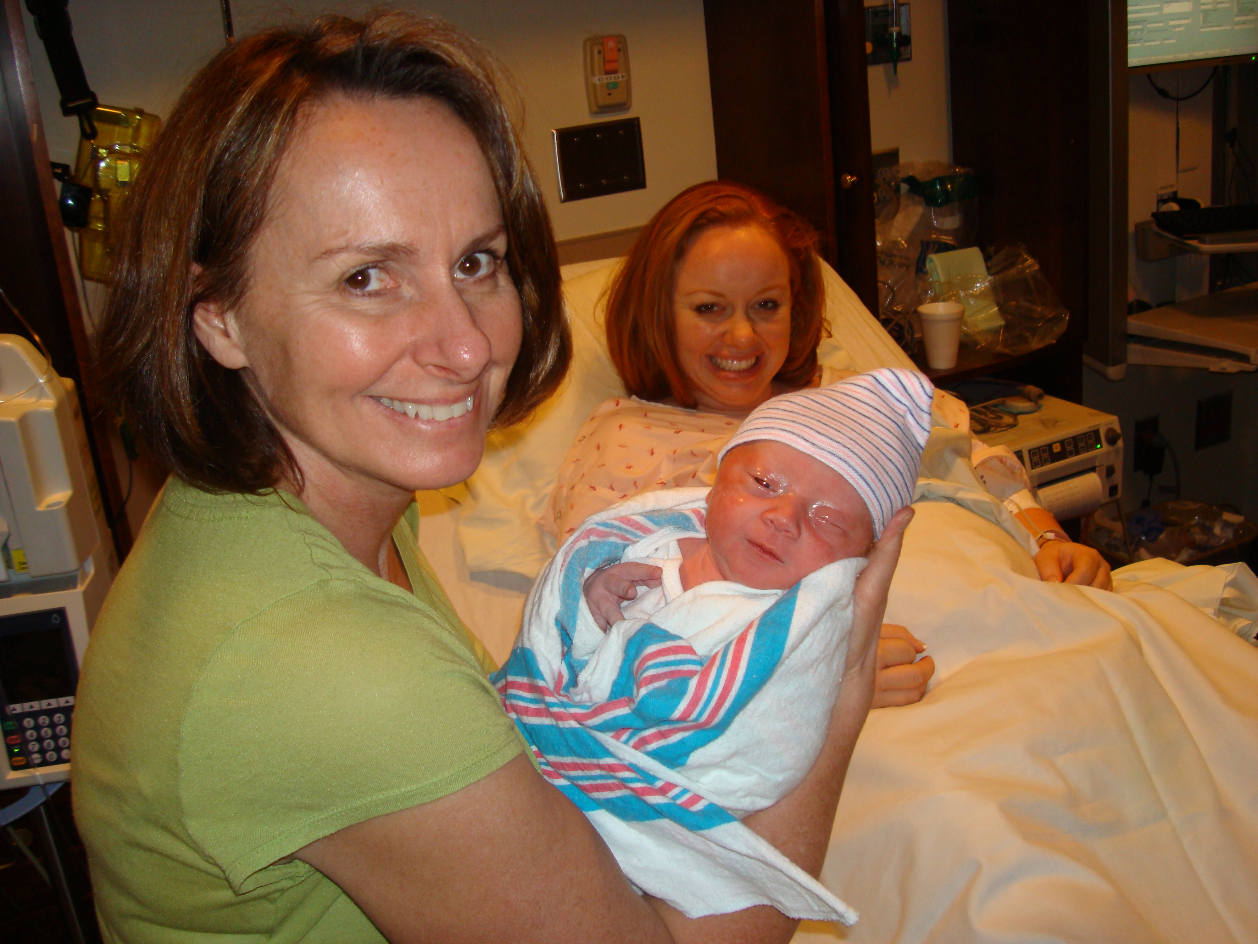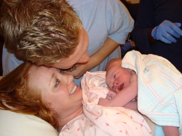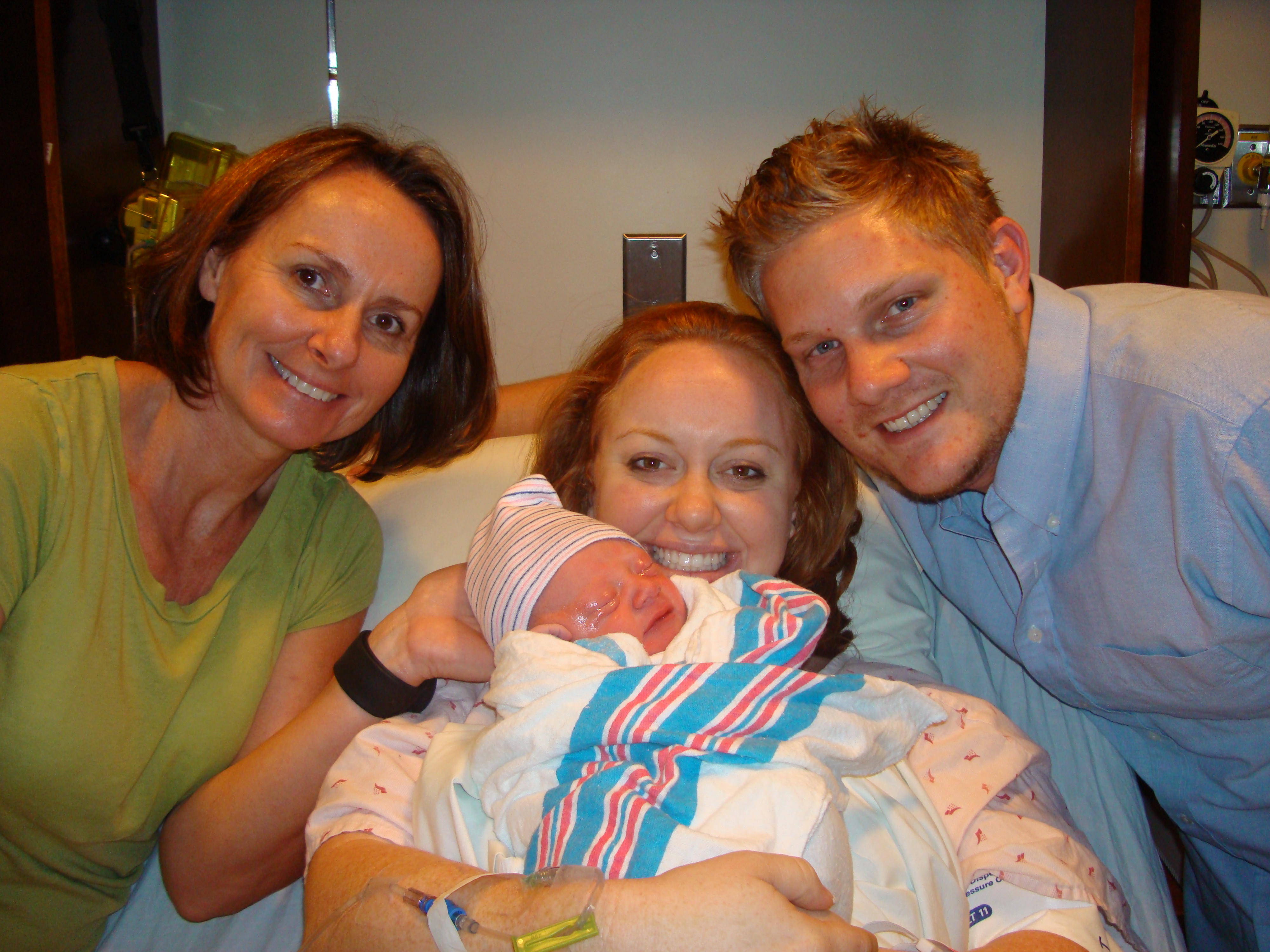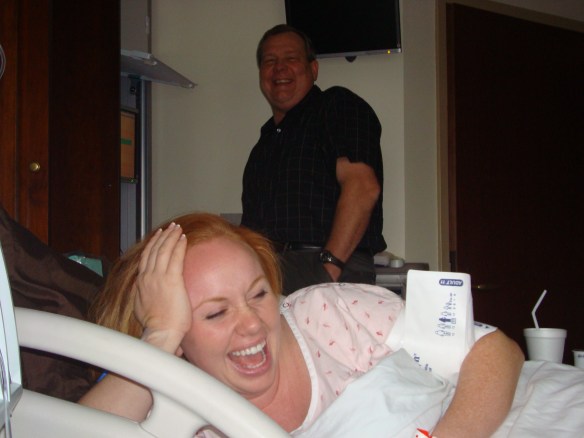 I had Ian’s hand in one hand, my mom’s in the other, squeezing as hard as I could, looking deep into each of their eyes for encouraging words.  My dad was on call, stuck at the hospital in South Carolina, and my brother put him on speaker phone, so he was able to be with us through it all.  My mom would pick up the phone and give him updates as often as possible. (I am 110% convinced that I would not have been able to make it through this without either of them.  They were the best “birthing coaches” I could ever have asked for.)