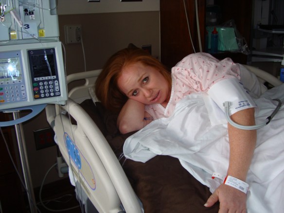 Finally, I was called to the desk to finish signing papers.  EVEN THOUGH I HAD PRE-REGISTERED, THIS TOOK A GOOD 30 MINUTES!!  Again, I don’t know what I would have done if I had been in active labor!  After my last signature, we went upstairs and they showed us to our birthing suite- Room #28.  The nurse instructed me to put on my hospital gown.  This turned into be an escapade all in itself.  Those gowns have holes in places they shouldn’t have and I ended up with body parts sticking out from each one. I had to yell for my mom to come and help me- both of us erupting in laughter.  Comic relief was very much appreciated.