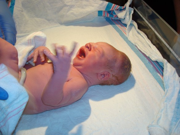 His first moment of life. 10:29 pm, November 15, 2011.