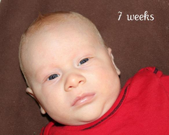 I have to admit though- he has started doing a few things that even make ME question if he is really 7 weeks not months old-