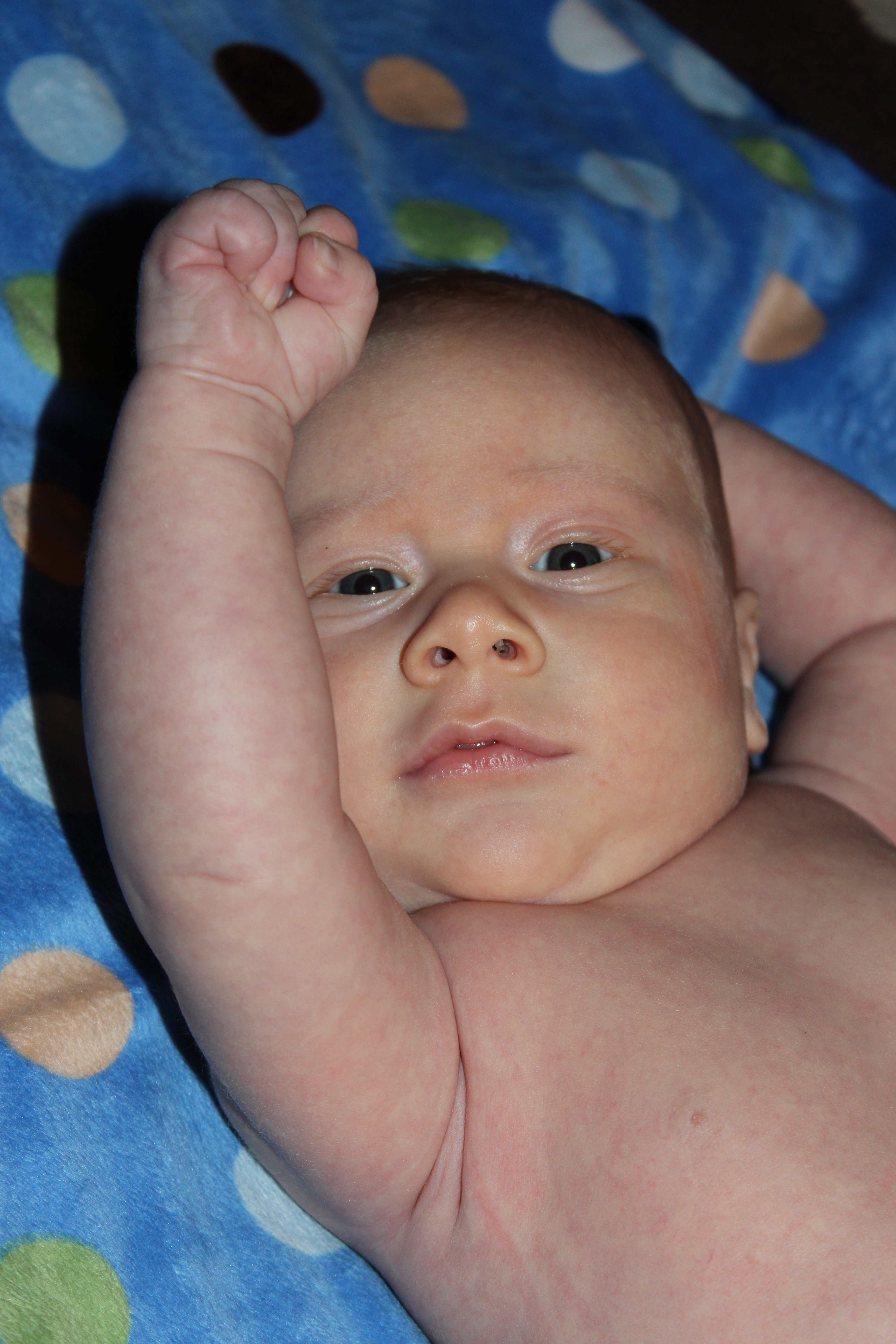 You are eight weeks old already! You just keep growing- and you are perfecting some really good lookin’ rolls on your thighs! Your Great Grandma Jean would say “It looks like you were screwed together!” just like she used to tell me when I was a baby :).