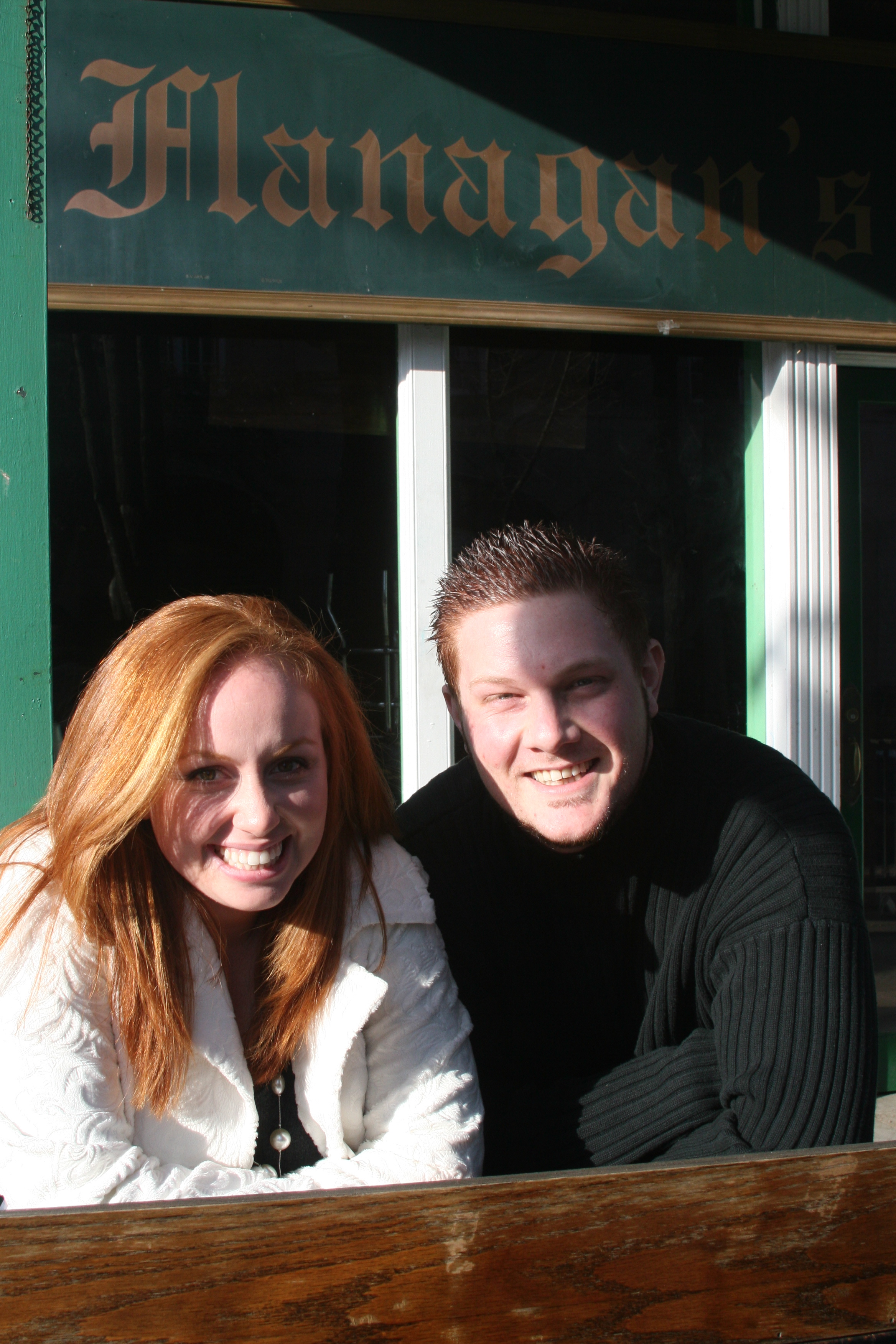 Before going to the bar, I had spent the evening studying for a physics exam and I was beyond frustrated.  I was having a slight mental breakdown, knowing that I was not prepared for the test- I couldn’t for the life of me understand the material. My best friend, Brittany was out on the town with some friends, and urged me to come meet up with her for a break.  Despite the fact that I was in my oldest hoodie, ripped jeans, hair a hot mess, and mascara running down my cheeks from my minor mental breakdown, I agreed.  Upon walking into Flanagans, Ian and I locked eyes.  I, in my most romantic, flirtatious voice, asked him where the bathroom was. 😉  Being the gentleman that he is (and the Flanagan’s regular), he showed me a “secret” bathroom, so I could avoid the long line.  That pretty much did it for me.  I was in love. HAH!   I found my way back to my friends and told Brittany about the mysterious bathroom man with the beautiful blue eyes.  She asked where he was and he was nowhere to be found.   A few minutes later, Ian walked in and started talking to some of the guys that I was out with!  Turns out that we had mutual friends! We spent the rest of the night talking and at the end of the evening, we exchanged phone numbers.  He called a couple days later and set up our first date.