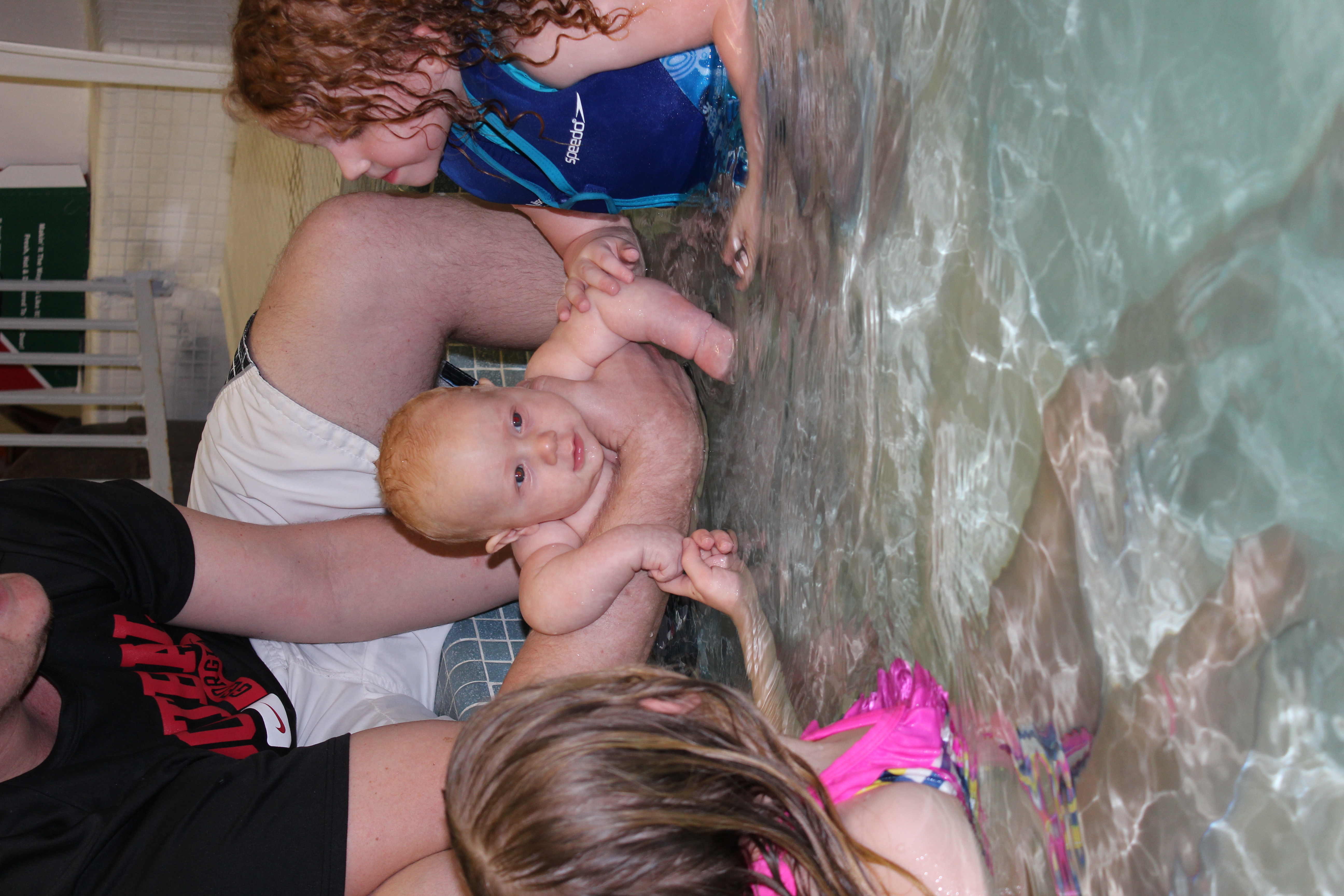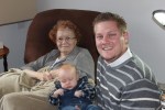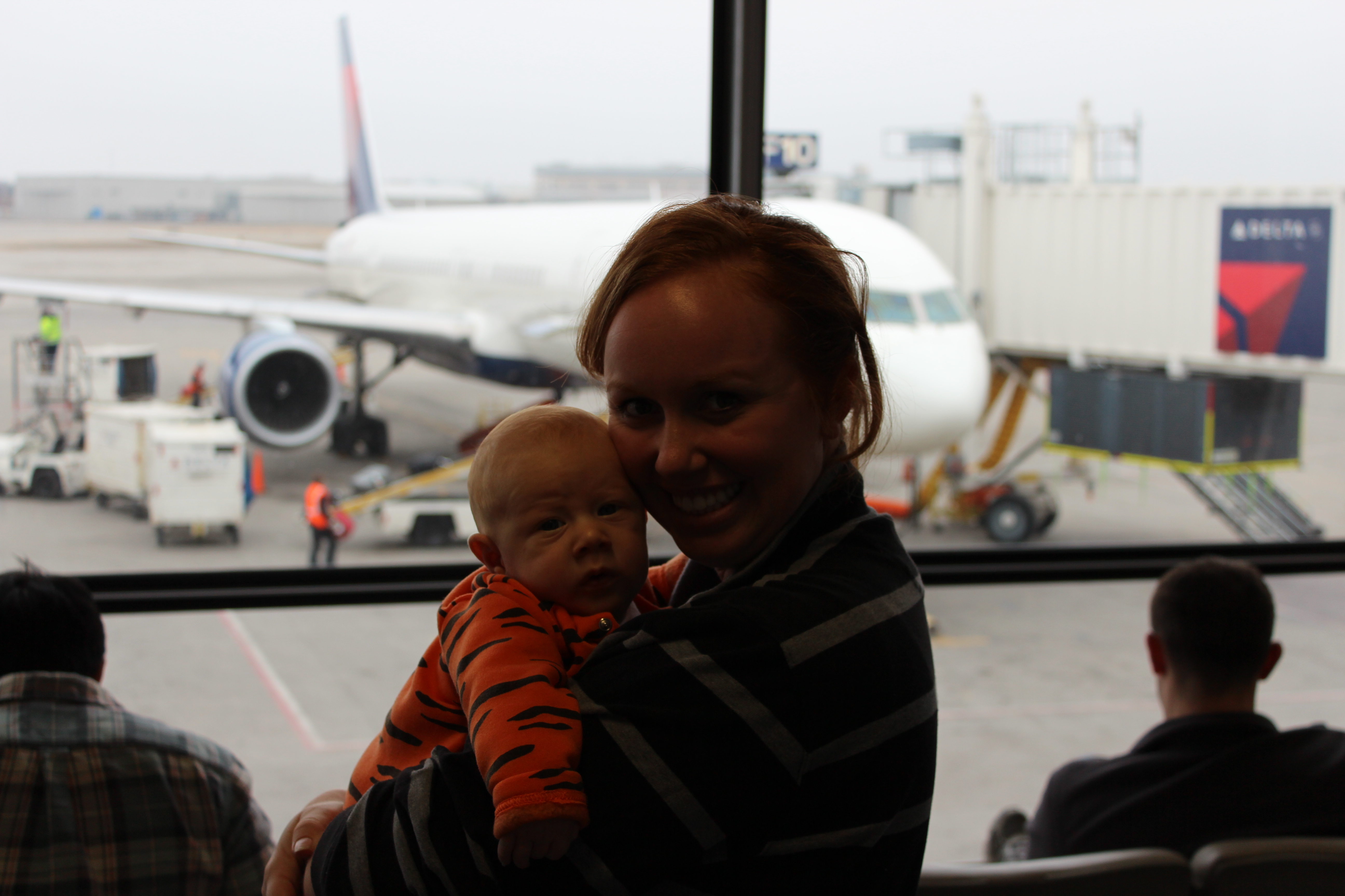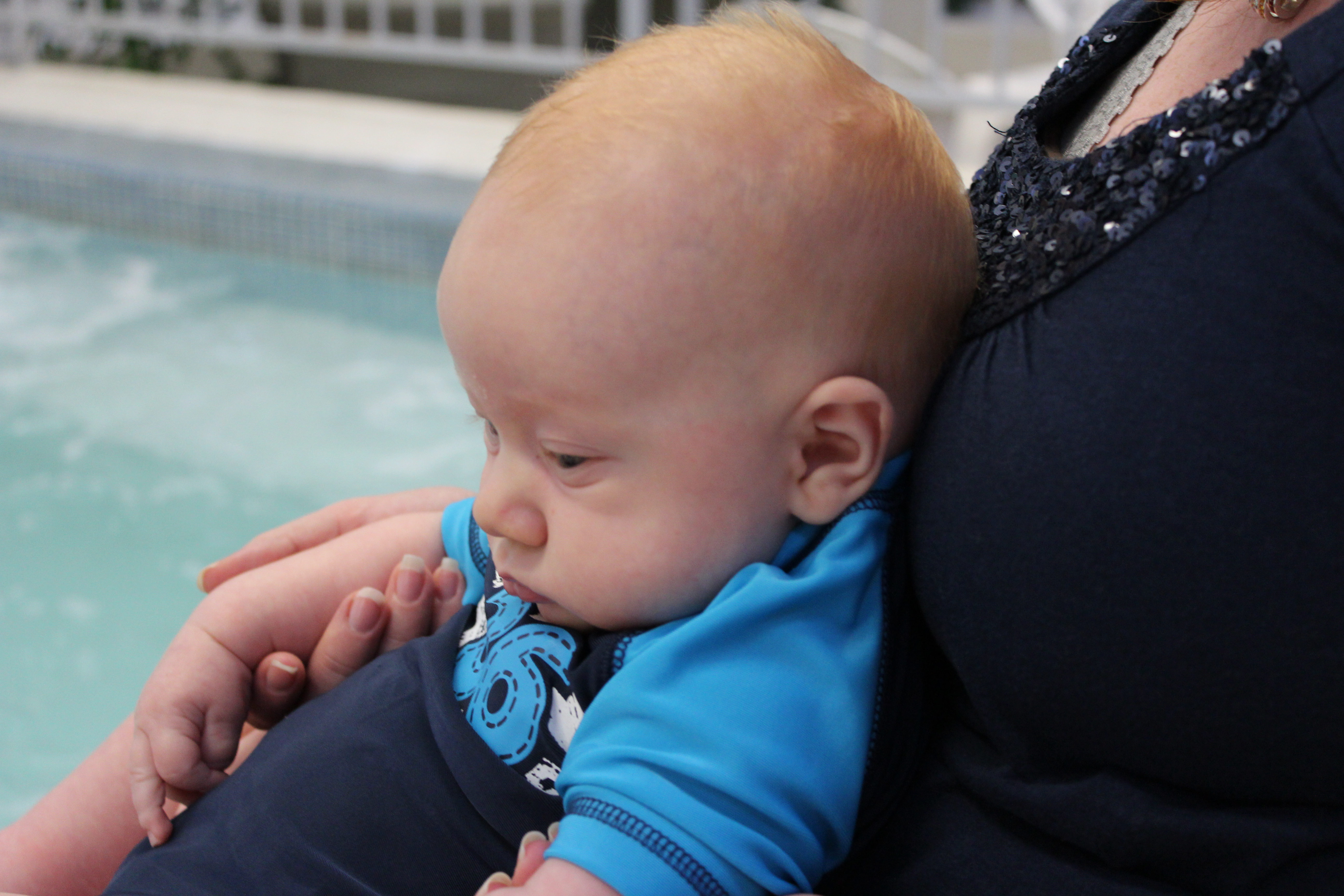 Grae’s weekend was chock-full of first time experiences, and like always, he handled himself like a champ.  We took him on an airplane and flew to Minnesota so he could meet his Great Grandma Odie.  We also got to introduce him to the entire Mielke family- all of his great aunts and uncles and all but one of his second and third cousins!  Even Ian doesn’t remember a time when his extended family was together in its entirety in one place, so it was an amazing opportunity.  Graeson also got to see a little snow and went swimming in a pool for the first time! He loved swimming so much, he fell asleep in the water! We had such a phenomenal weekend and Grae Baby LOVED meeting everyone.  He was happy as a clam getting passed around from person to person.  He was so tired at the end of the day he slept for TEN HOURS STRAIGHT on Friday night!  He was a rockstar on the plane- he didn’t make a peep either way.  The passengers sitting around us commented over and over about what a great baby he is at the end of both flights.  (You could see it in their eyes they were not so pleased about getting seated next to the infant on the way to their seats, so it was nice that they were pleasantly surprised at the end of the flight ;).) We were so proud of our little traveler.  When we got back to Atlanta, Ian and I gave each other a high-five. It was quite the confidence booster knowing that we survived- we made it all the way to Minnesota and back with our baby and it was flawless. Now, we can’t wait to do it again!