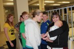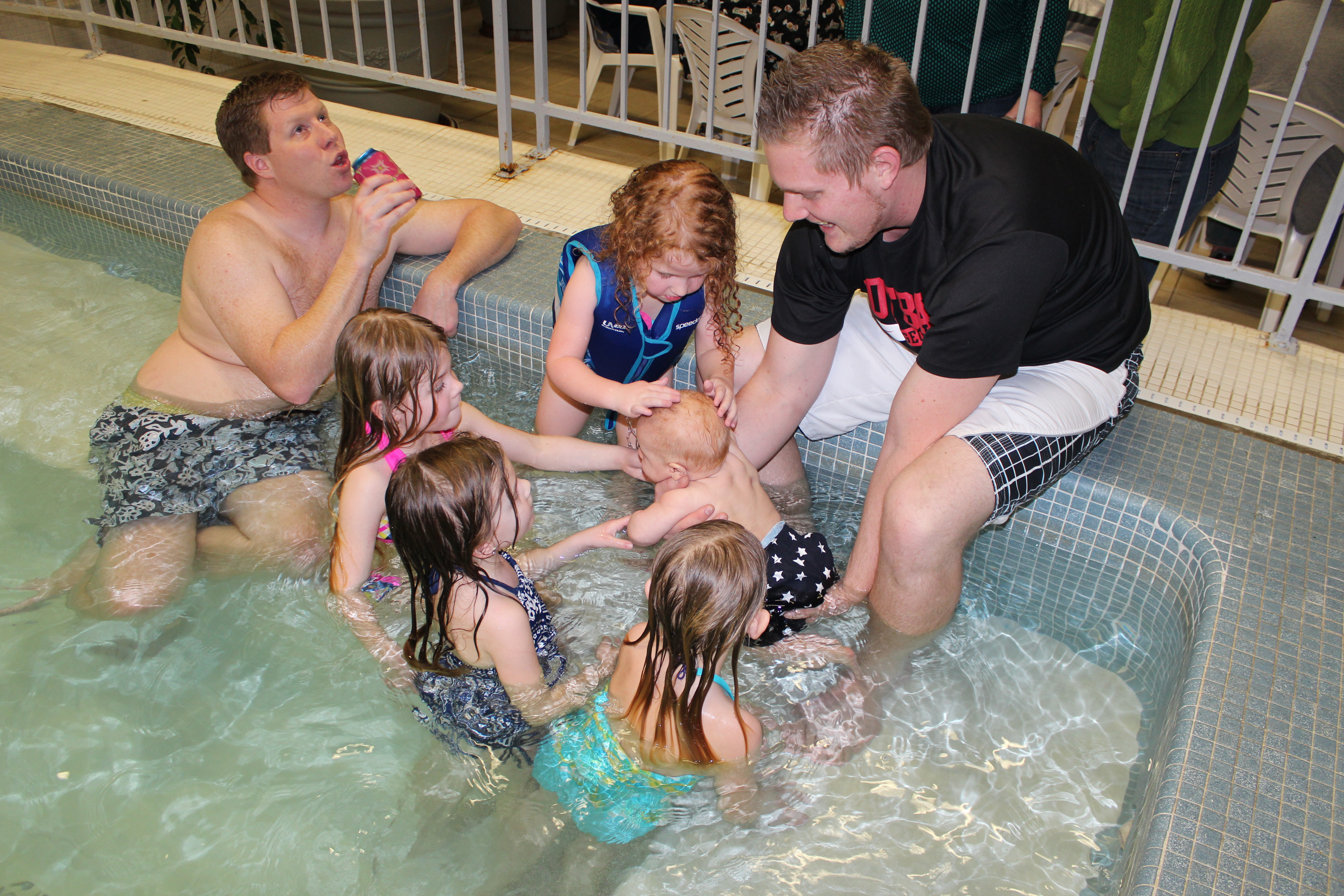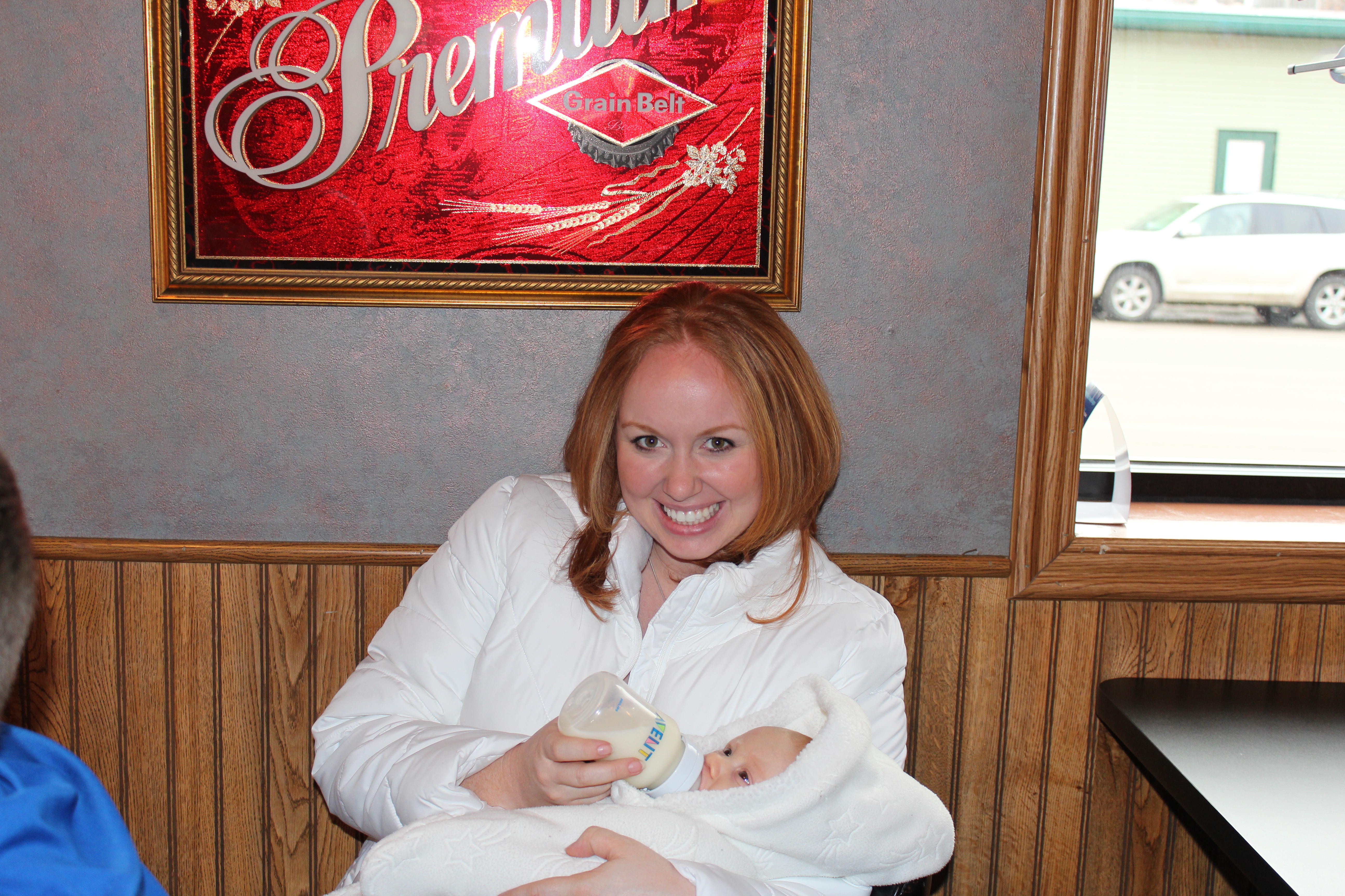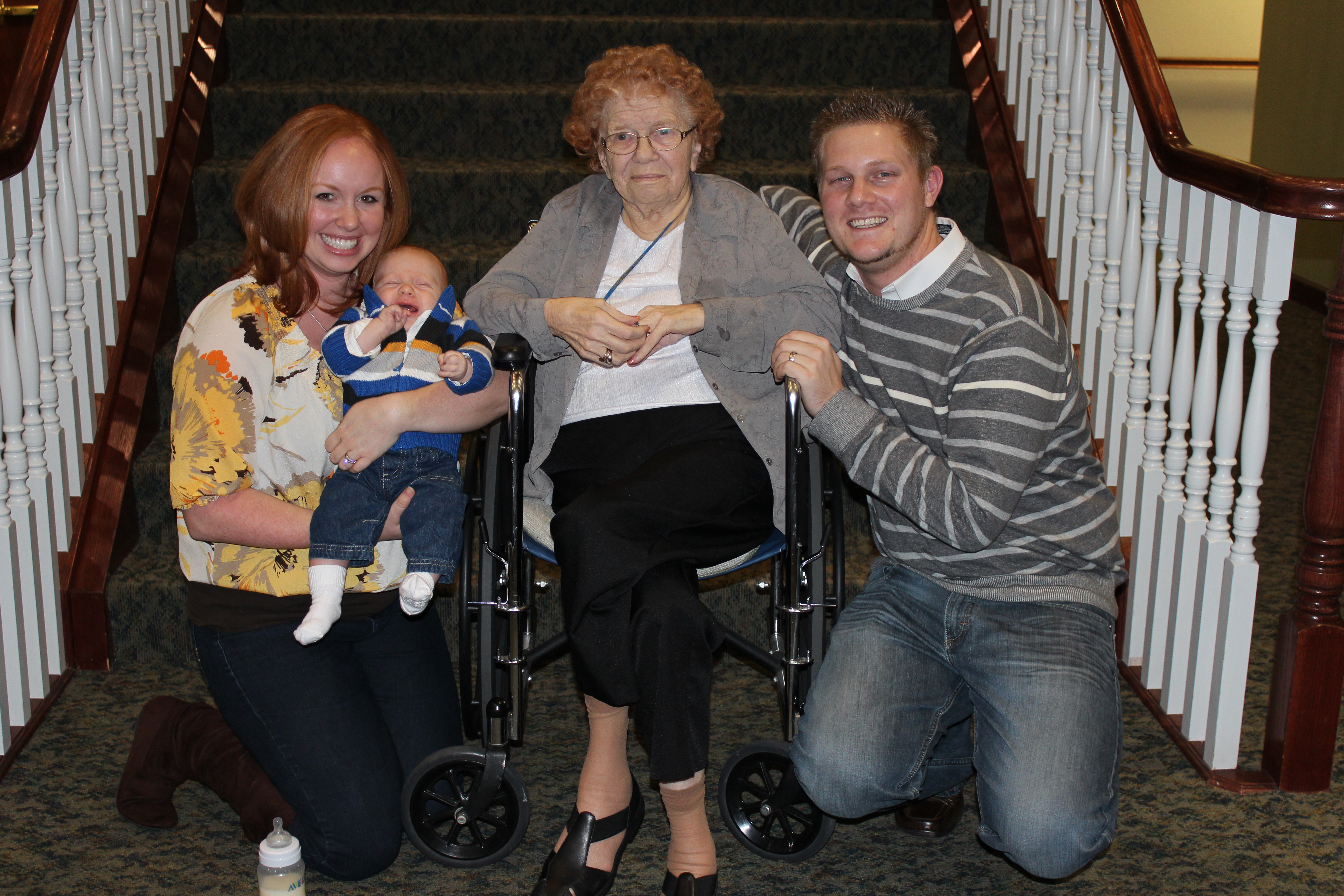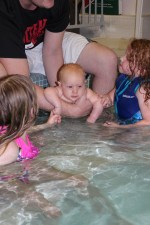 Grae’s weekend was chock-full of first time experiences, and like always, he handled himself like a champ.  We took him on an airplane and flew to Minnesota so he could meet his Great Grandma Odie.  We also got to introduce him to the entire Mielke family- all of his great aunts and uncles and all but one of his second and third cousins!  Even Ian doesn’t remember a time when his extended family was together in its entirety in one place, so it was an amazing opportunity.  Graeson also got to see a little snow and went swimming in a pool for the first time! He loved swimming so much, he fell asleep in the water! We had such a phenomenal weekend and Grae Baby LOVED meeting everyone.  He was happy as a clam getting passed around from person to person.  He was so tired at the end of the day he slept for TEN HOURS STRAIGHT on Friday night!  He was a rockstar on the plane- he didn’t make a peep either way.  The passengers sitting around us commented over and over about what a great baby he is at the end of both flights.  (You could see it in their eyes they were not so pleased about getting seated next to the infant on the way to their seats, so it was nice that they were pleasantly surprised at the end of the flight ;).) We were so proud of our little traveler.  When we got back to Atlanta, Ian and I gave each other a high-five. It was quite the confidence booster knowing that we survived- we made it all the way to Minnesota and back with our baby and it was flawless. Now, we can’t wait to do it again!