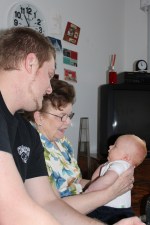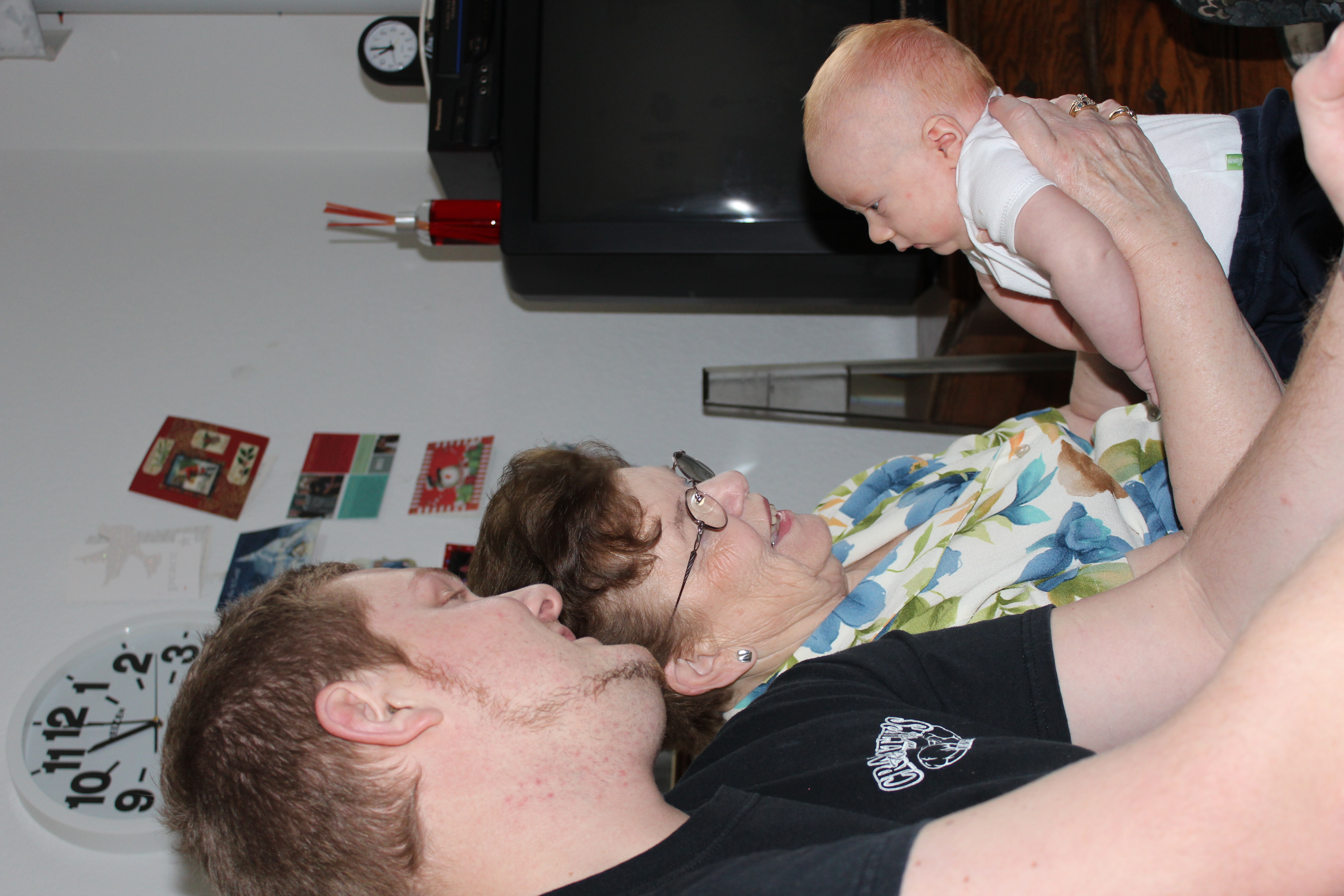 Grae’s biggest milestone this week is getting to meet all of his aunts, uncles, cousins and his Great Grandma Odie for the first time!! We can’t hardly wait to introduce him to Daddy’s side of the family. 🙂