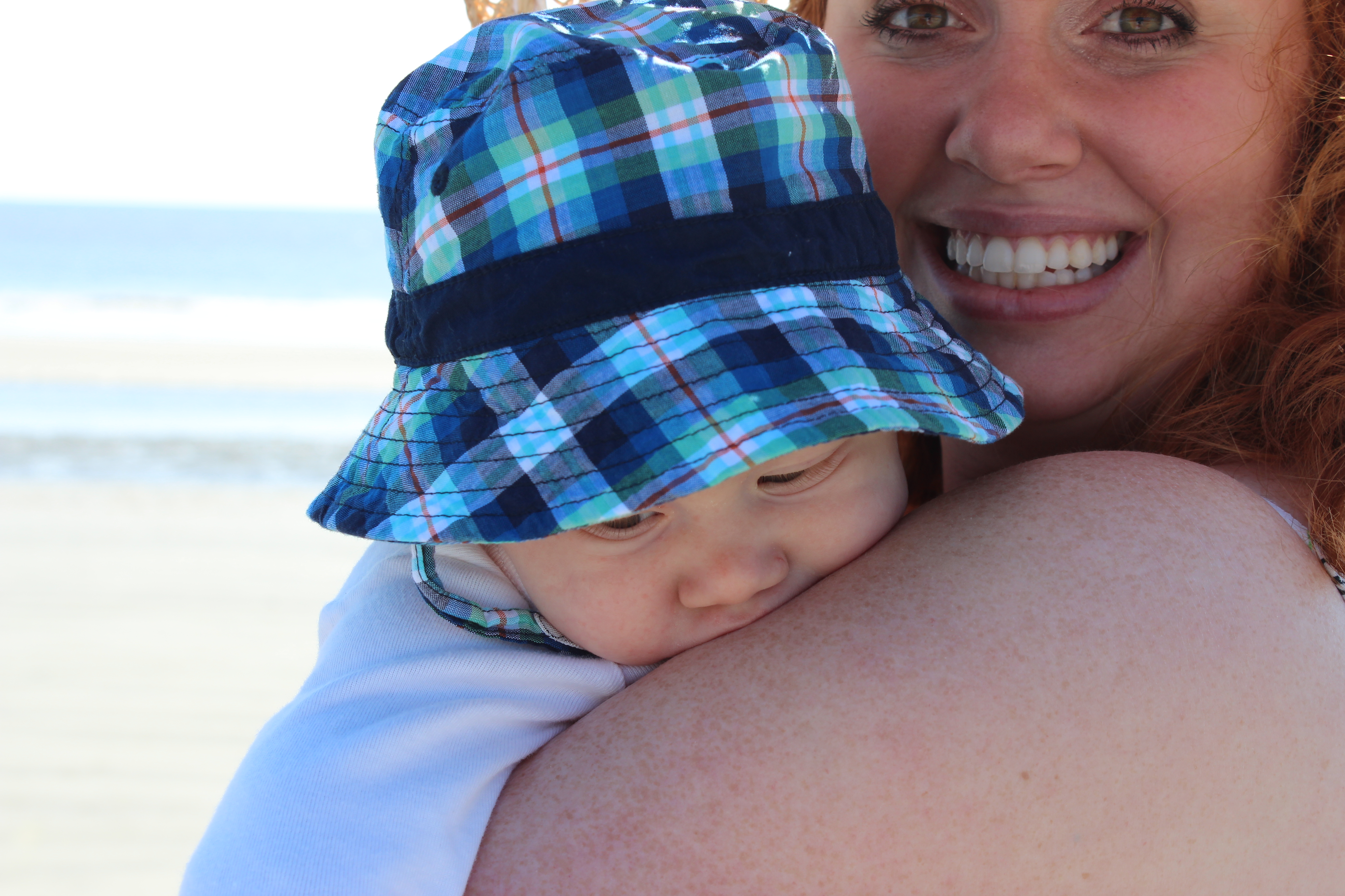 You are now 5 months old and conquering new feats every day! We gave you rice cereal for the first time- you LOVED it and GOBBLED it up. You learned how to sit up on the floor unassisted- balancing with your hands out to both sides! This is even more exciting because we have discovered that you can now sit in a grocery cart by yourself and even in restaurant high chairs.