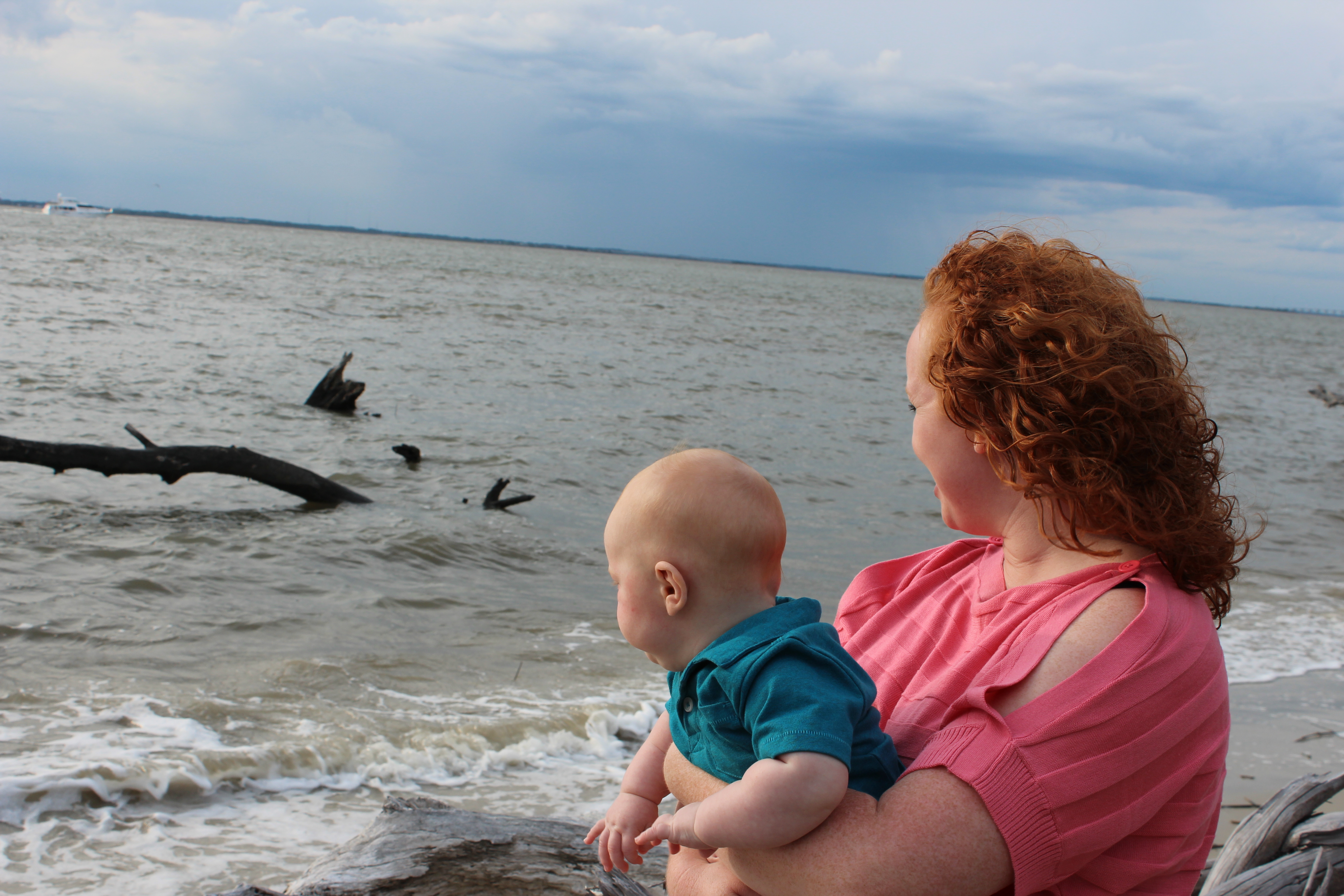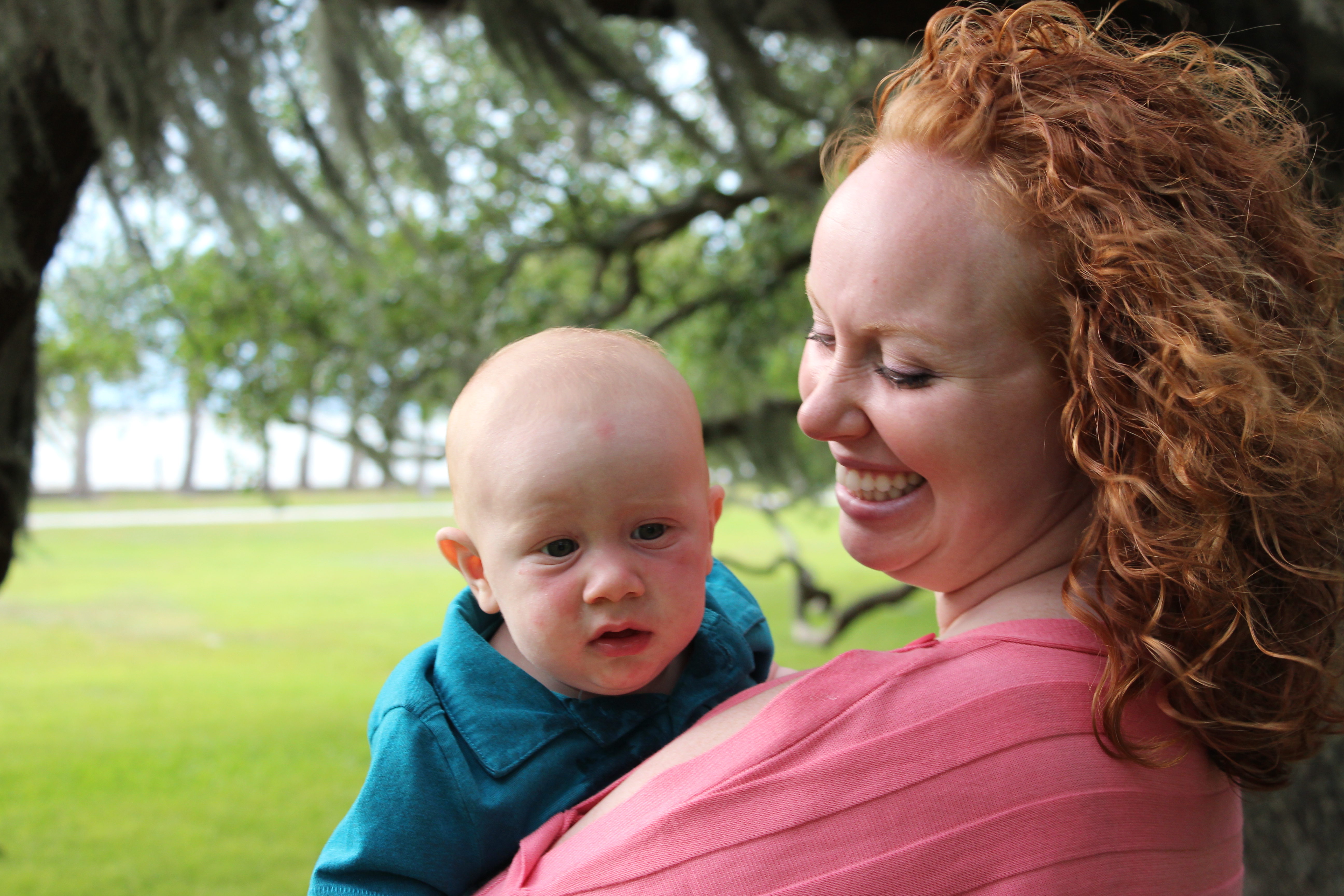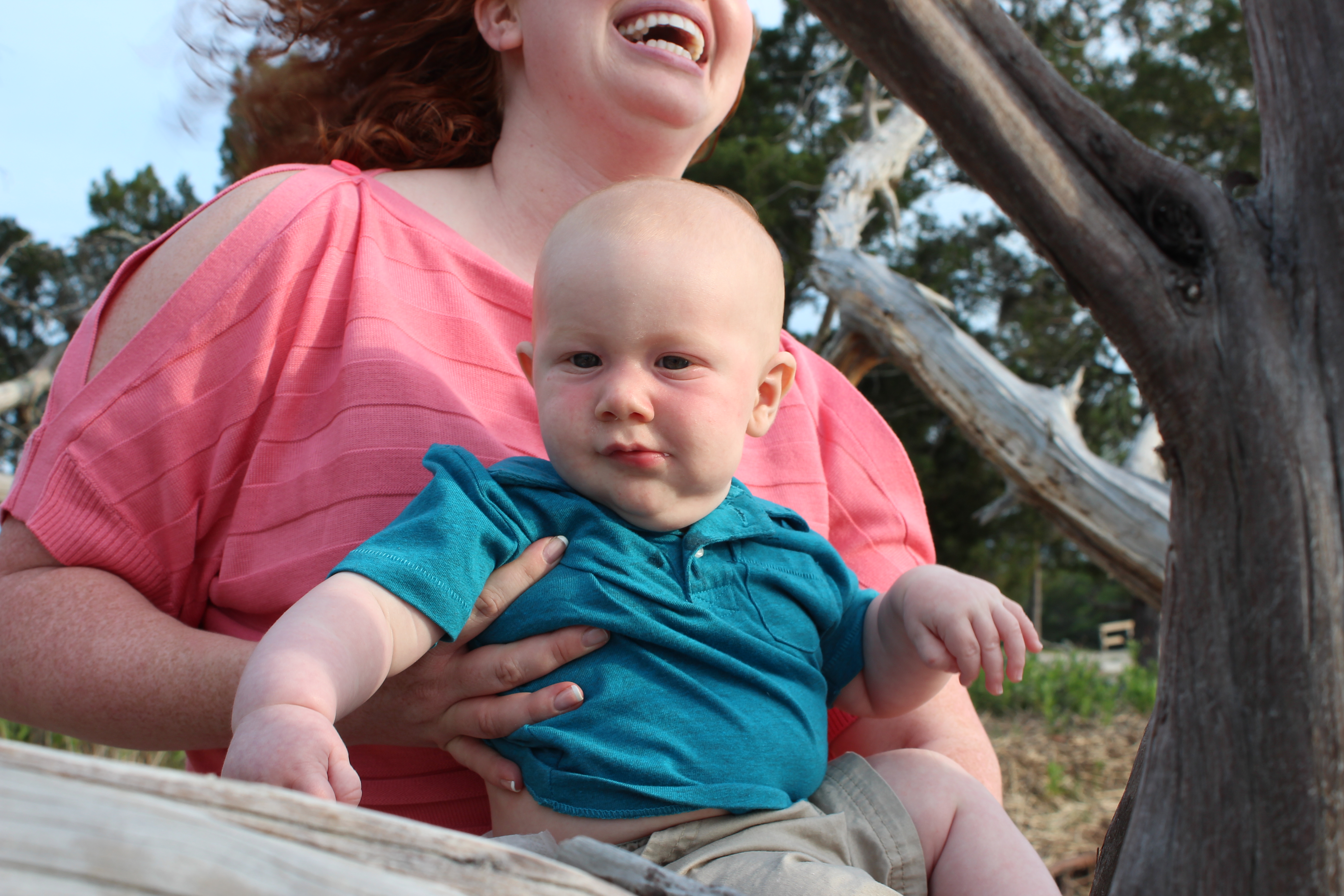 You can pick moving objects up off the floor and pass them from hand to hand (after, of course, putting it in your mouth a time or two). We think there is a good chance you might skip crawling all together and just start walking because your little, chunky legs are so strong. Your sudden interest in the outside world sometimes makes feeding you a challenge (and that’s putting it mildly). I think you know your name and are starting to learn fun games of cause and effect. You are also starting to get a little leery of strangers. The lady at Sam’s Club makes you cry when she talks to you.
