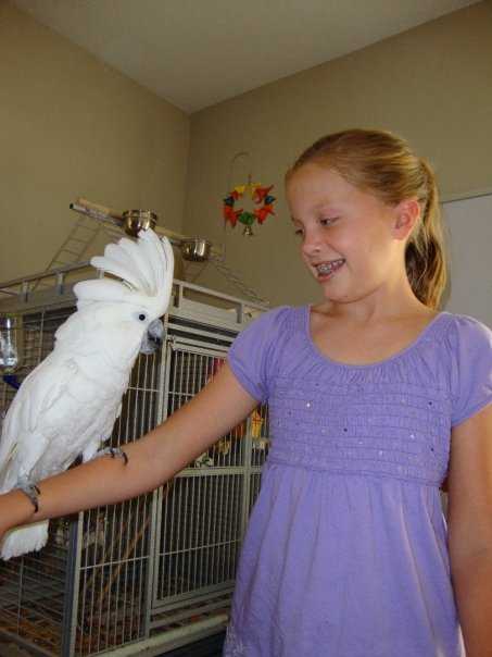 And then there is Margila.  She is a trip.  Our crazy umbrella cockatoo.  She says all kinds of funny things, and even impersonates our barking dogs.  I’m waiting for her to start crying just like Grae.  She hates me and LOVES Ian. She also greats everybody with a human-like “HELLLLLO” as they walk into the house.  Then she’ll let out a few blood curdling screams.  I have become so accustomed to this, I usually forget to explain/introduce Margila to visitors.  Oftentimes, our company will get a horrified look on their face and say, “IS THERE A CHILD STUCK UPSTAIRS!?”