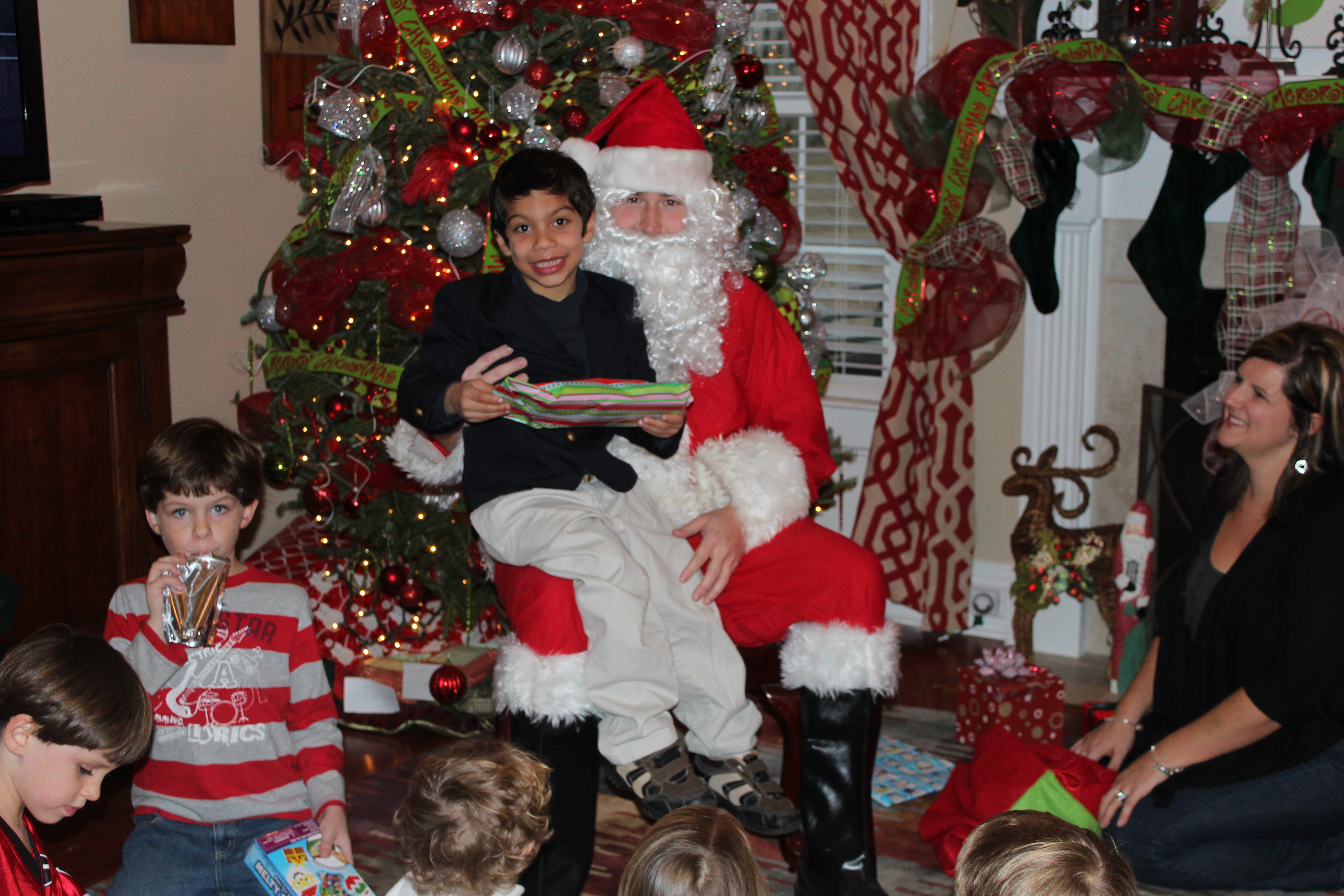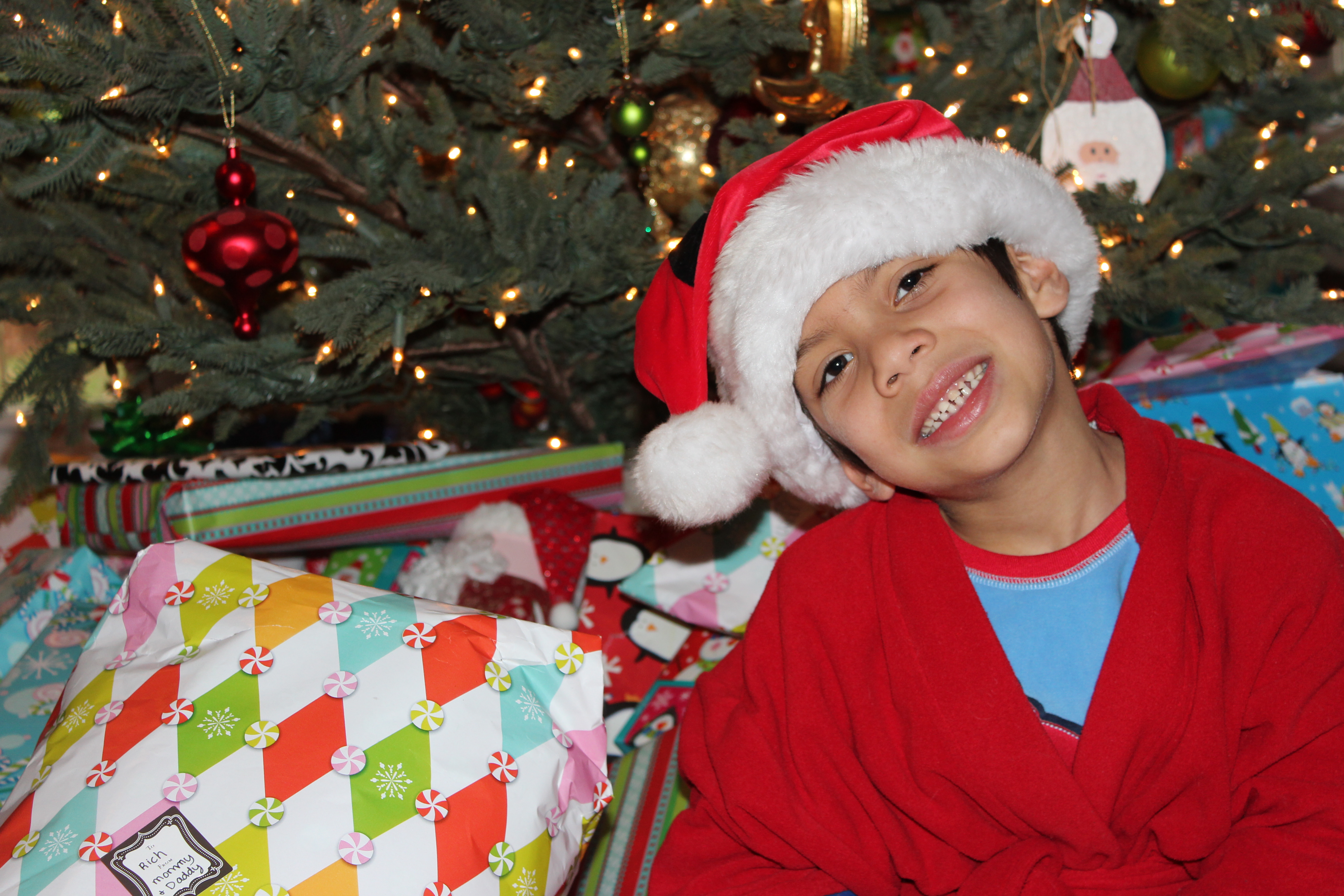 We spent many nights this Christmas season reading about the birth of Jesus. We put our nativity scene together and talked about Mary and Joseph, the three kings, angels and shepherds. And on Christmas Eve, I woke RJ up at 10:00 pm and asked him if he wanted to attend a Christmas Eve Church service with the adults. He popped out of bed quicker than I could blink. He had never heard of Jesus before coming to live with us, so he had about a million questions, but was fully attentive well into the wee hours of the night.